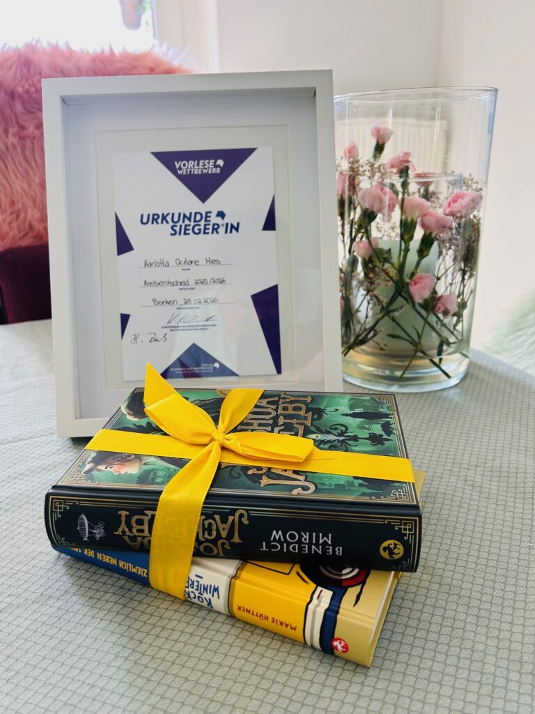 Der Bezirksentscheid findet in der Vredener Bücherei statt. Die Schulgemeinschaft drückt Lotta fest die Daumen und freut sich, wenn viele GGV‑Schüler:innen sie dort im Publikum unterstützen.