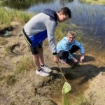Auf der Heidefläche haben die Klassen die Möglichkeit, mit Keschern aquatische Lebewesen zu untersuchen - entscheidende Indikatoren für die Qualität des Wassers und den Zustand des gesamten Ökosystems.